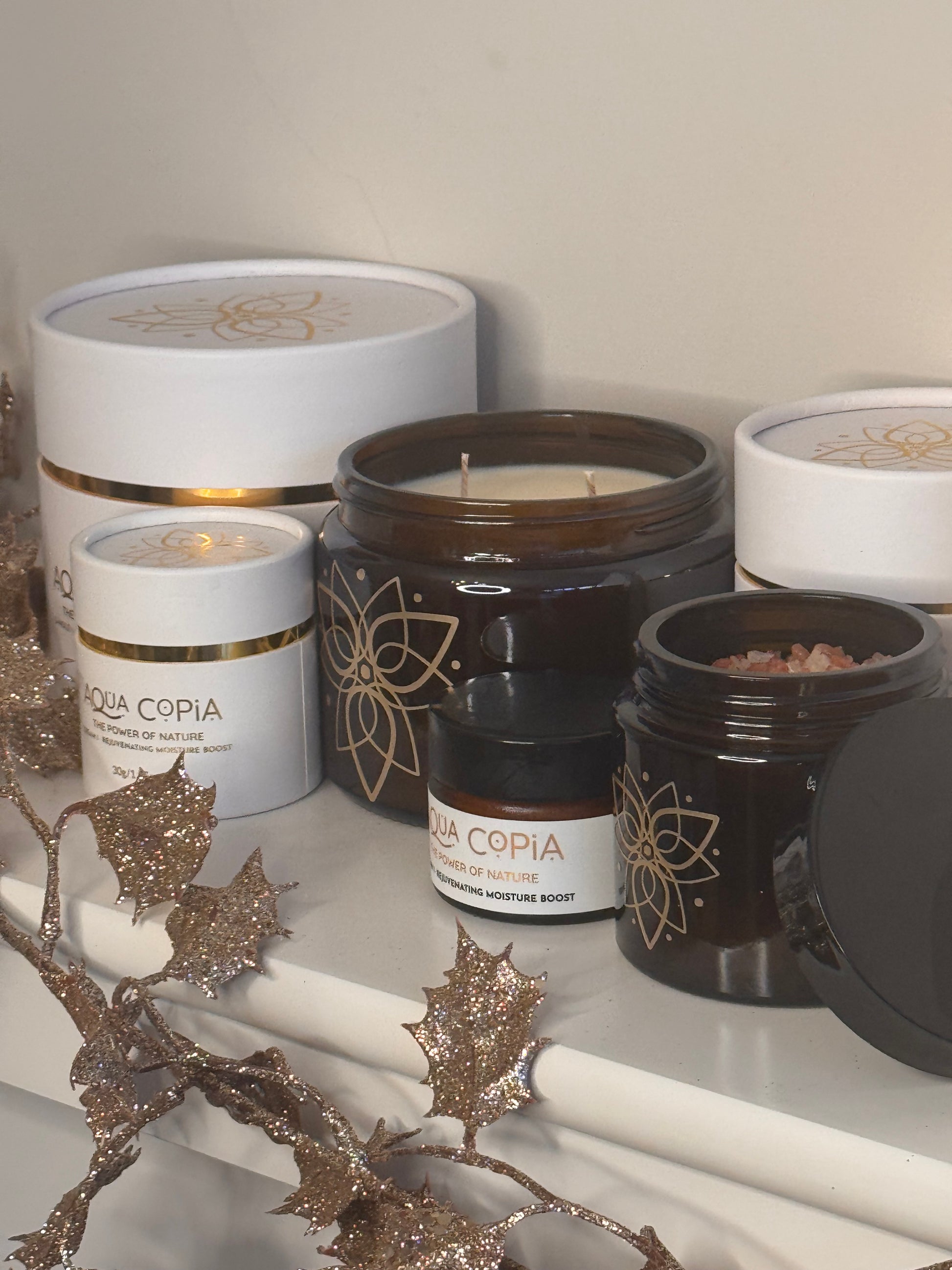 Our XL luxury soy wax candle comes in elegant 500ml amber glass jar embossed with our beautiful flower logo in brushed gold. Hand-poured with eco-friendly soy wax and containing our signature blend of essential oils (with no synthetic fragrances) to compliment our face cream.
